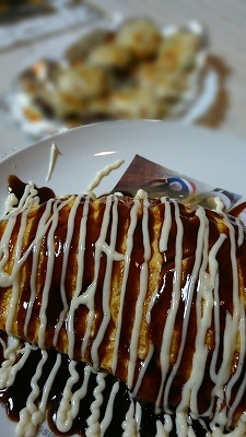 お好み焼きソースとマヨネーズをかけて出来上がり!