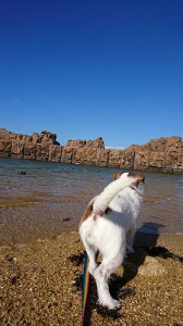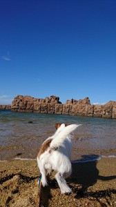 ビスコを連れて北九州市若松区の脇田(わいた)海水浴場へ行ってきました。