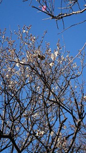 梅の花の香りを感じながら、メジロが枝を飛び交う姿を見ていると