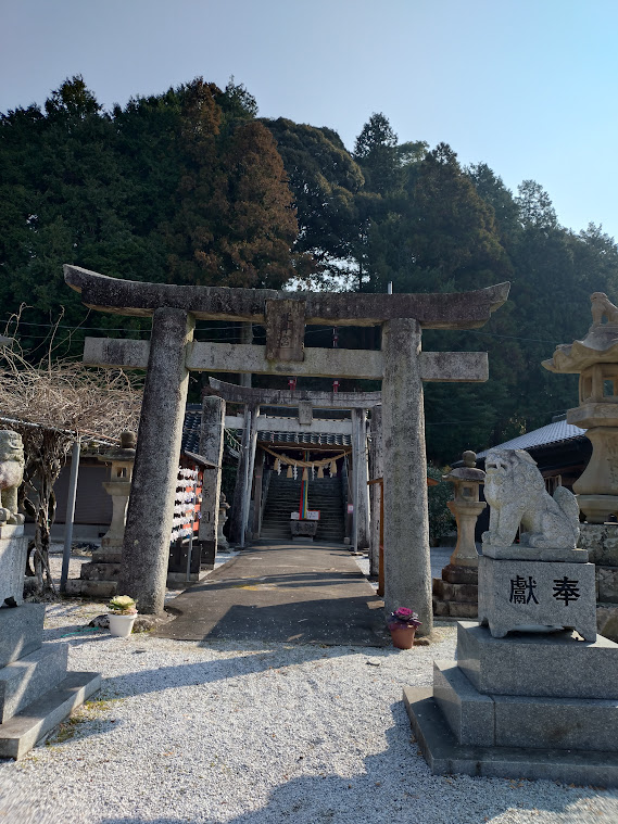 少し歩くと、中腹に「大楠神社」がありました。