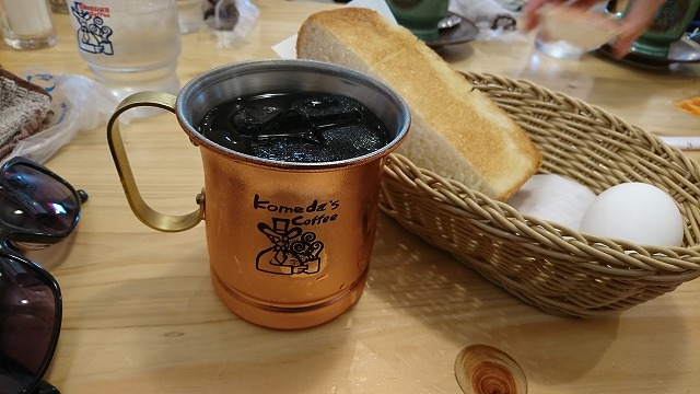 モーニングセットは食べ物無料なのでAセットのトーストと茹で卵も注文しました。