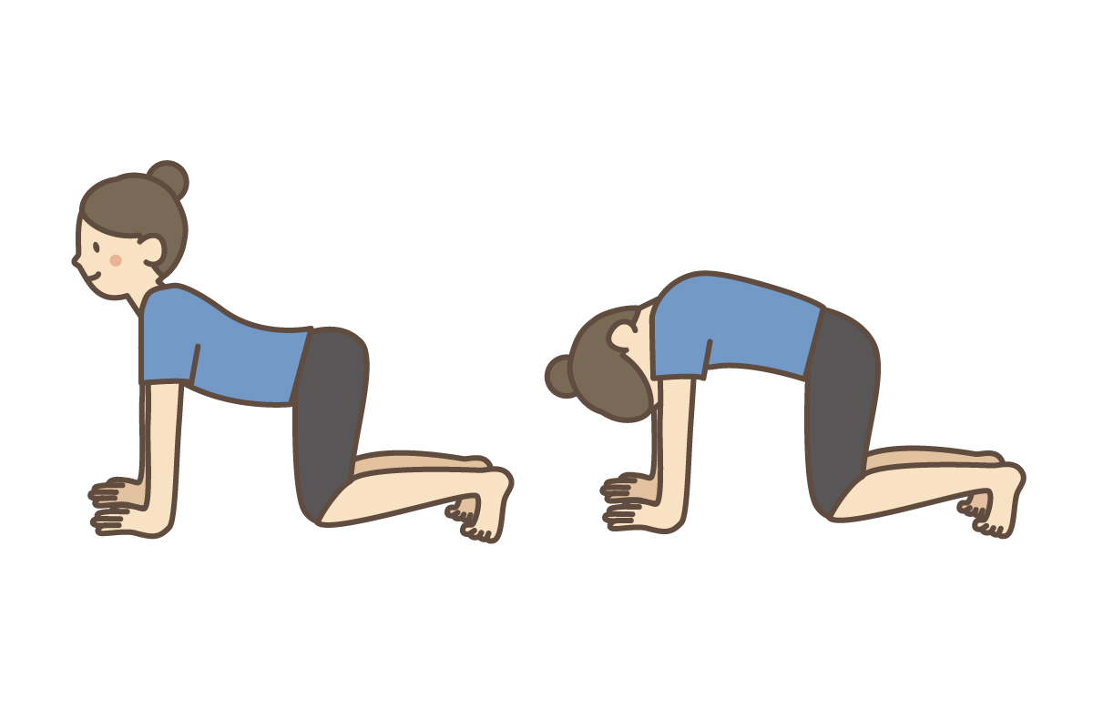 - 腰椎周りのストレッチ: 腰椎の柔軟性を保つためのストレッチ方法を指導します。例えば、仰向けに寝て膝を抱え込み、腰をゆっくりと伸ばすストレッチや、四つん這いの姿勢から背中を丸める動作(キャットカウストレッチ)が効果的です。