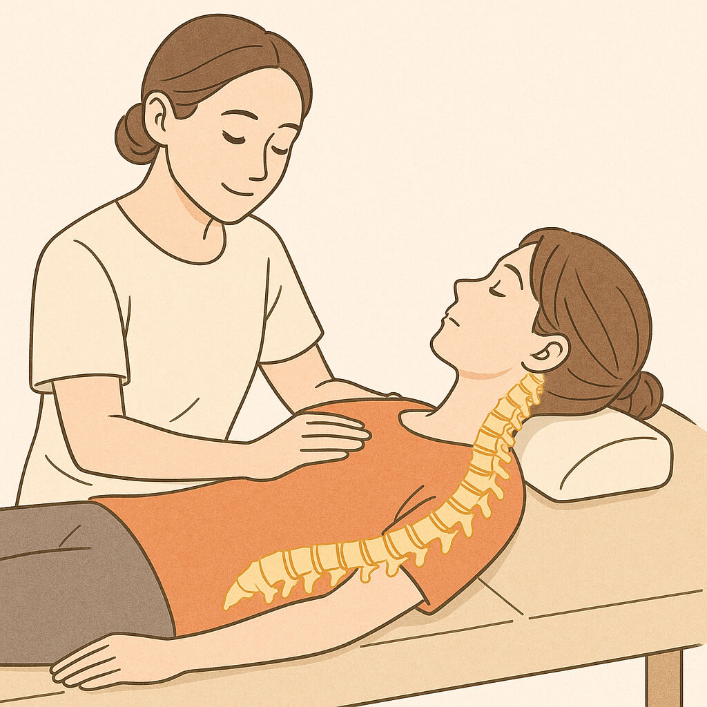 当院の整体では、単に首だけを施術するのではなく、背骨全体の連動性や骨盤の傾きにも注目します。