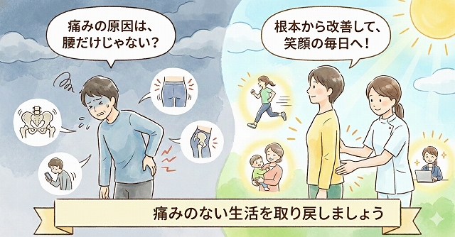 あなたの腰痛は、身体からの「少し休んで、ケアしてあげて」というサインです。その声に耳を傾け、健やかな未来への一歩を踏み出してみませんか?